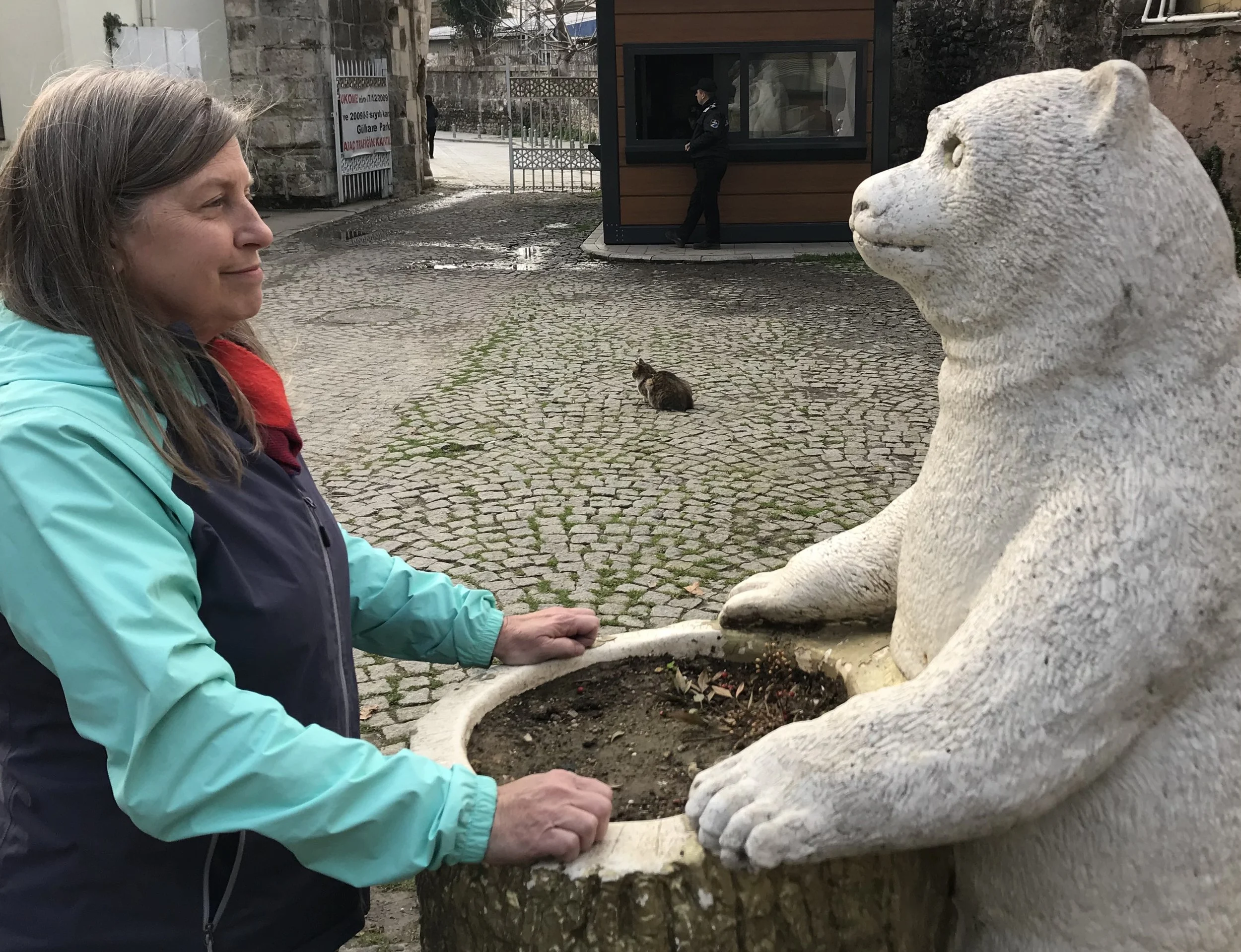 Cindy meets a new friend at Gülhane Park in Istanbul.
