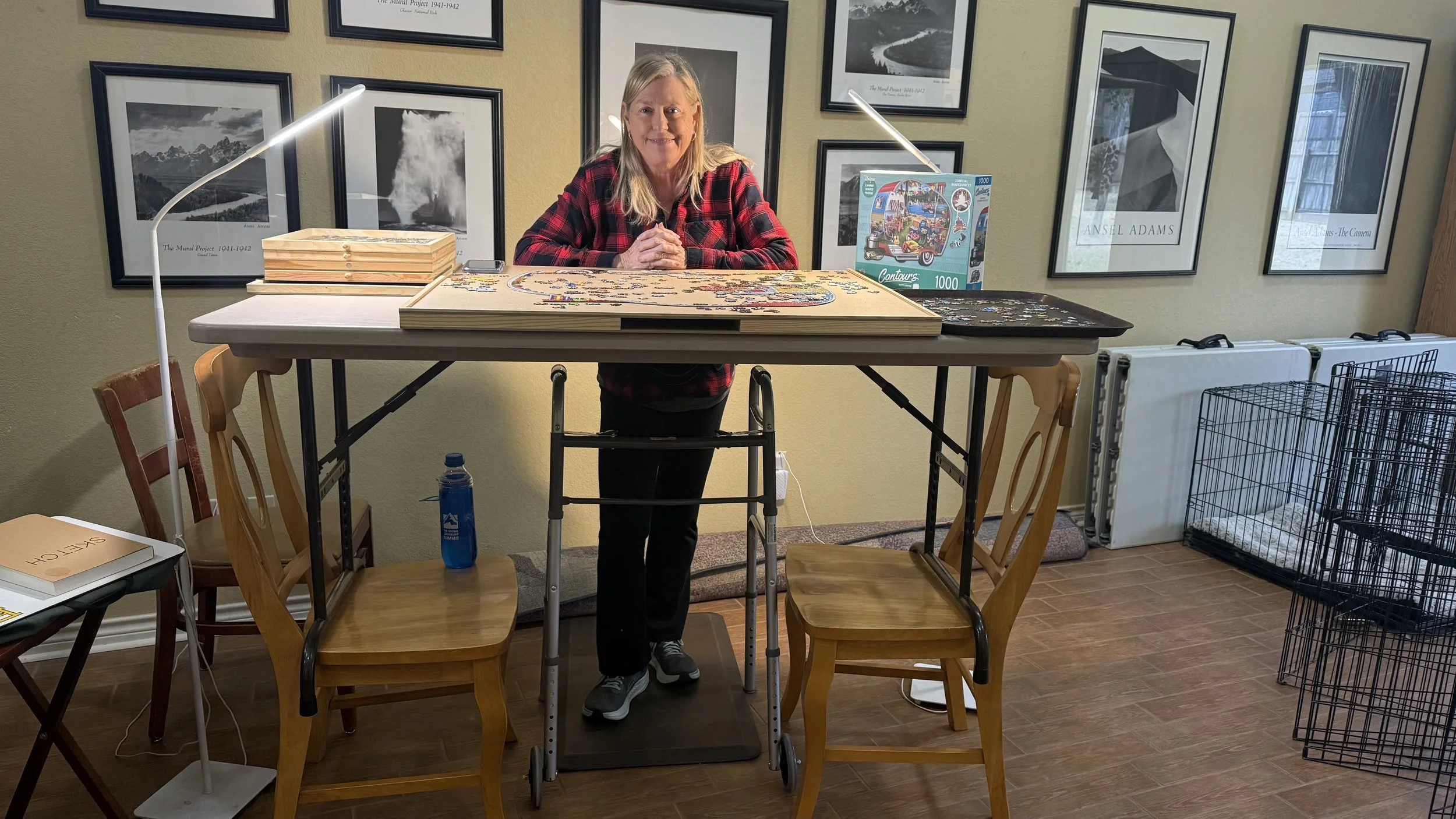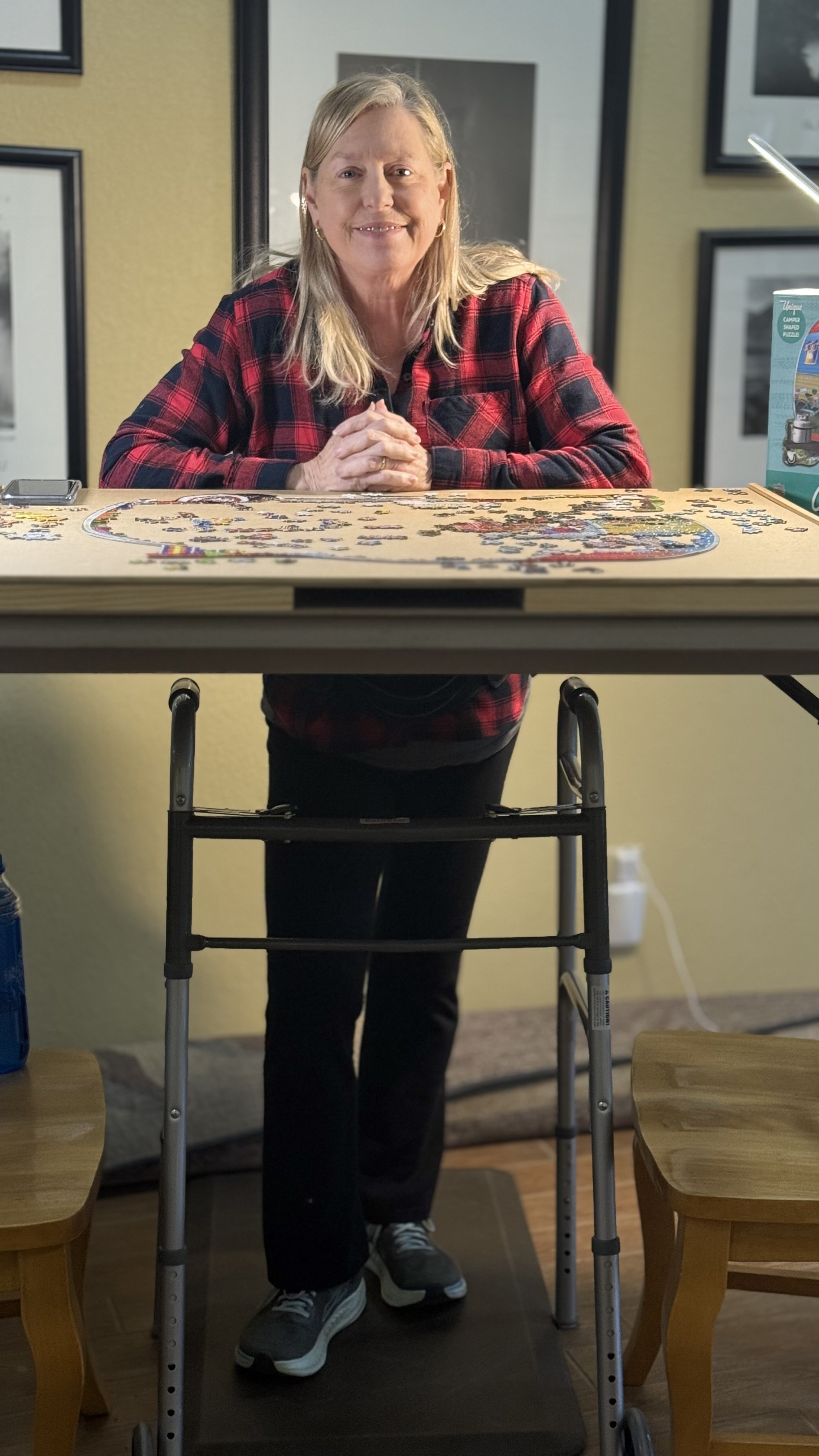 Cindy loves puzzles and it helps keep her mind off the leg pain.
