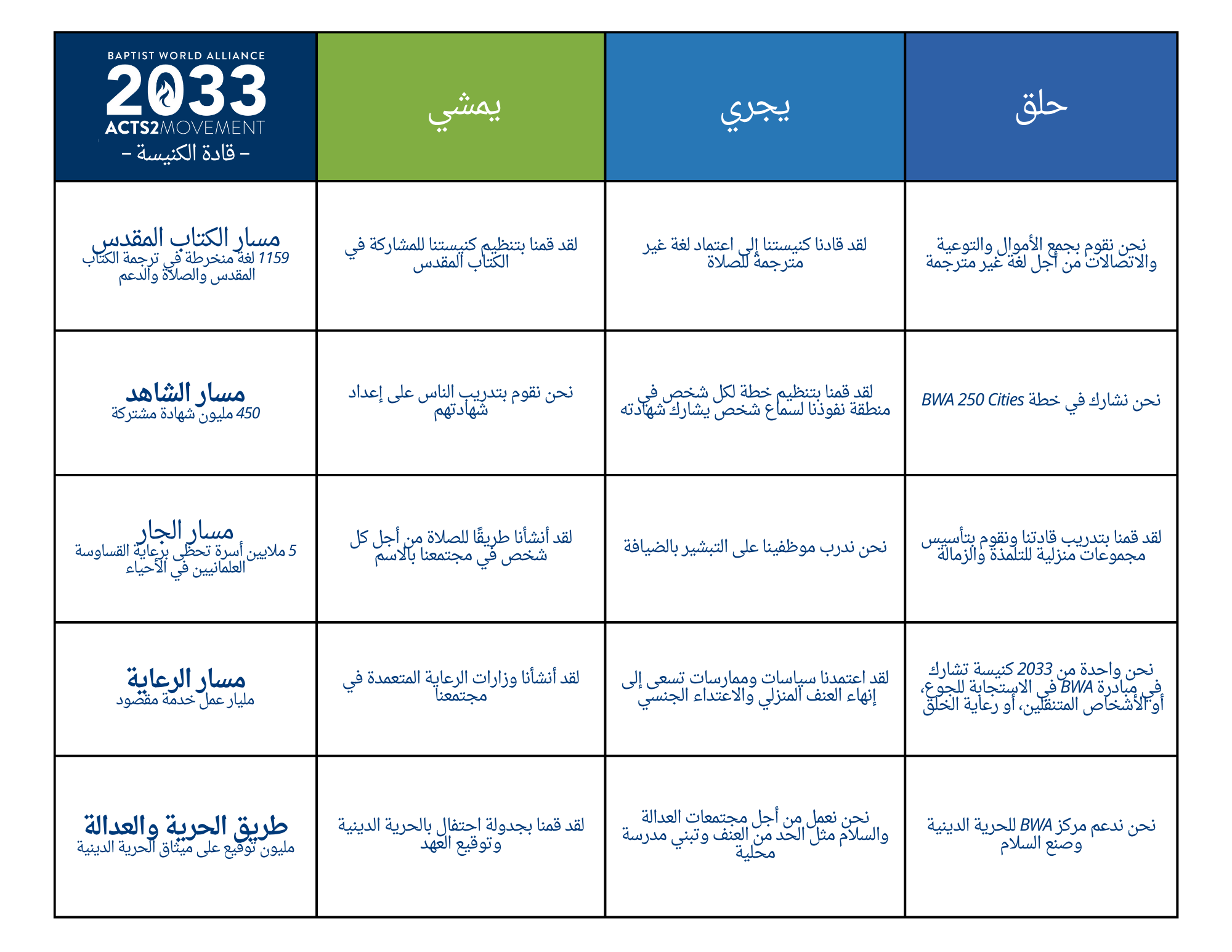 الهدف: إنشاء أهداف ملموسة وقابلة للقياس للكنيسة وأعضائها لتحقيقها بحلول عام 2033.