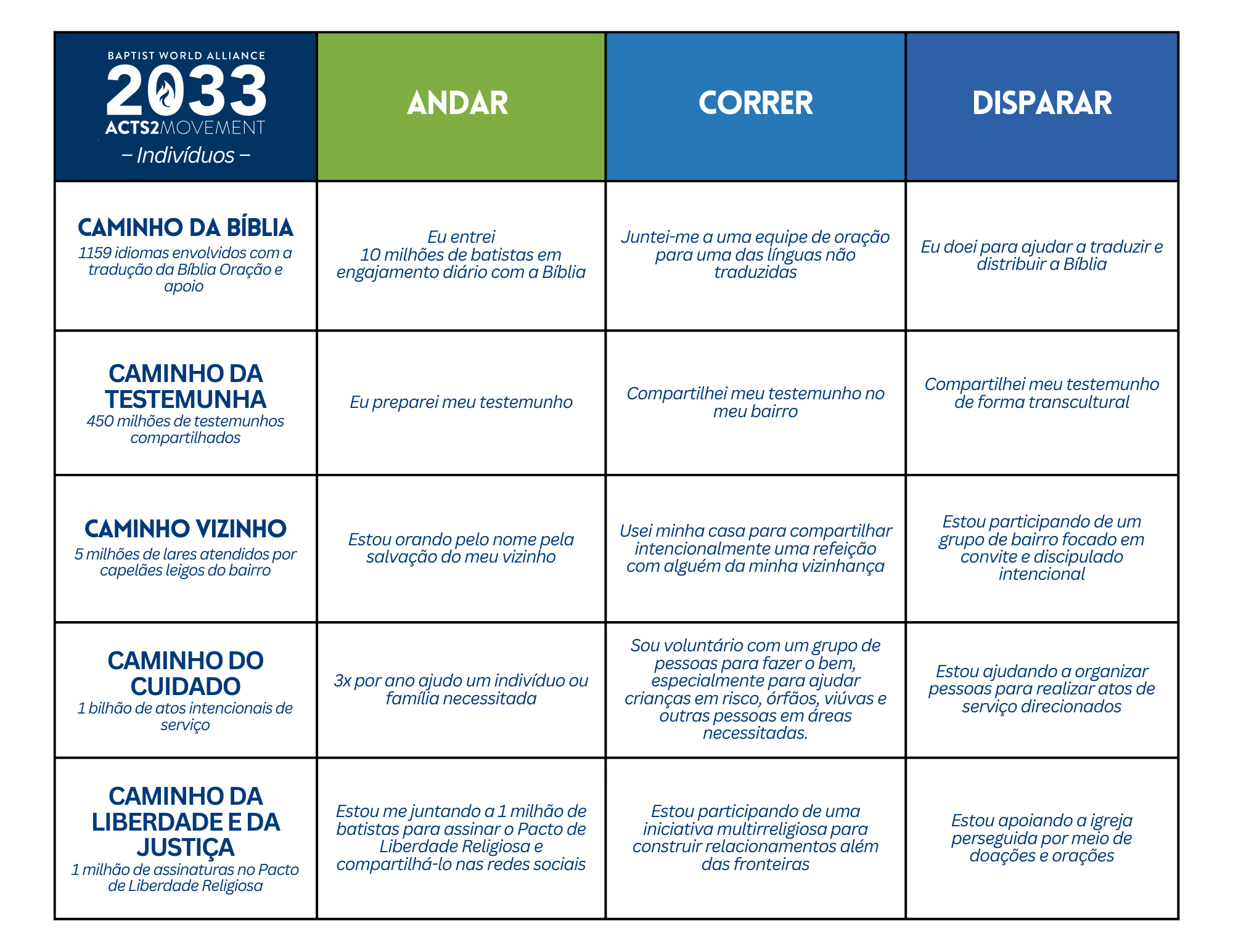 Objetivo: criar metas tangíveis e mensuráveis para a igreja e seus membros alcançarem até 2033.