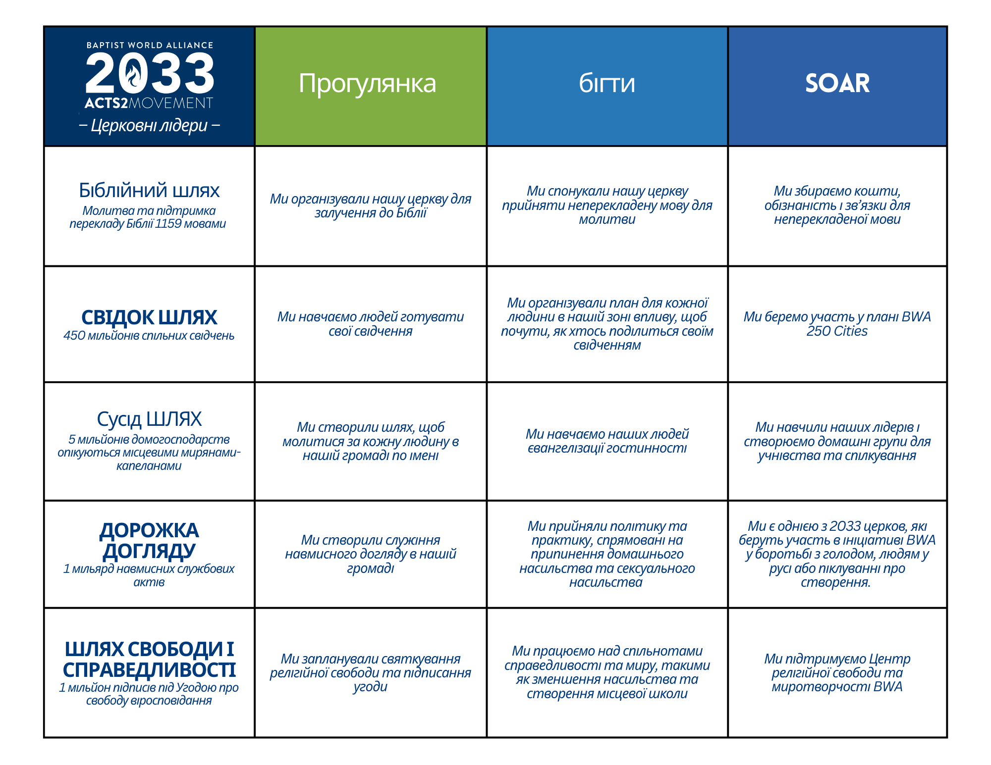 Мета: сформулювати реальні, вимірювані цілі, яких церква та її члени повинні досягти до 2033 року.